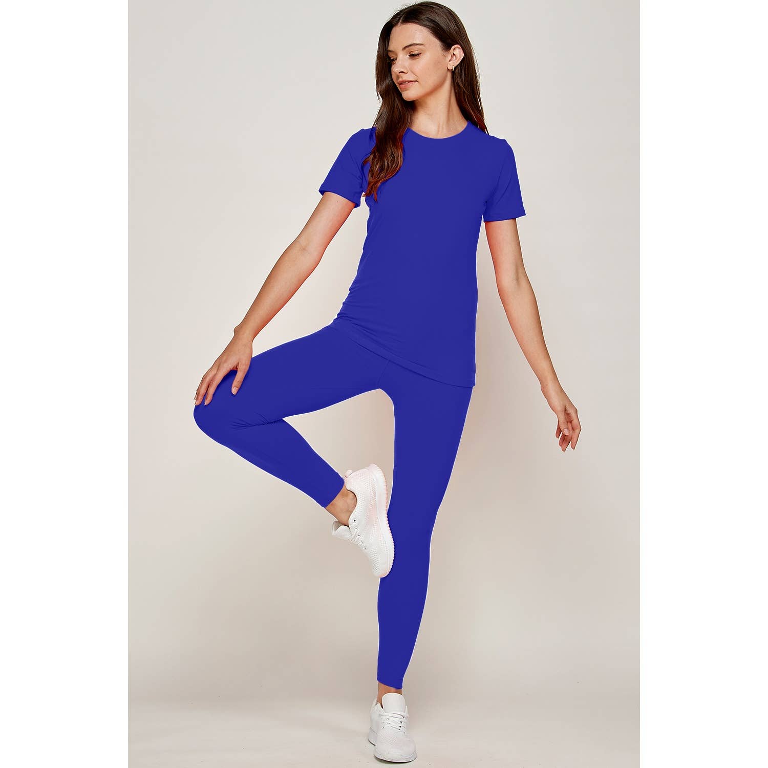ROUND NECK SHORT SLEEVE TOP AND FULL LEGGINGS SET